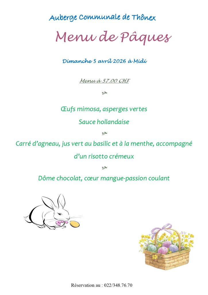 Menu Pâques 2026